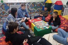 Сегодня прошла очередная игра-занятие с психологом от центра социального обслуживания населения. Дети играют, каникулы продолжаются...