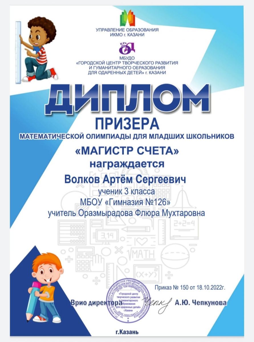 Призёр математической олимпиады 25.10.2022