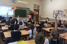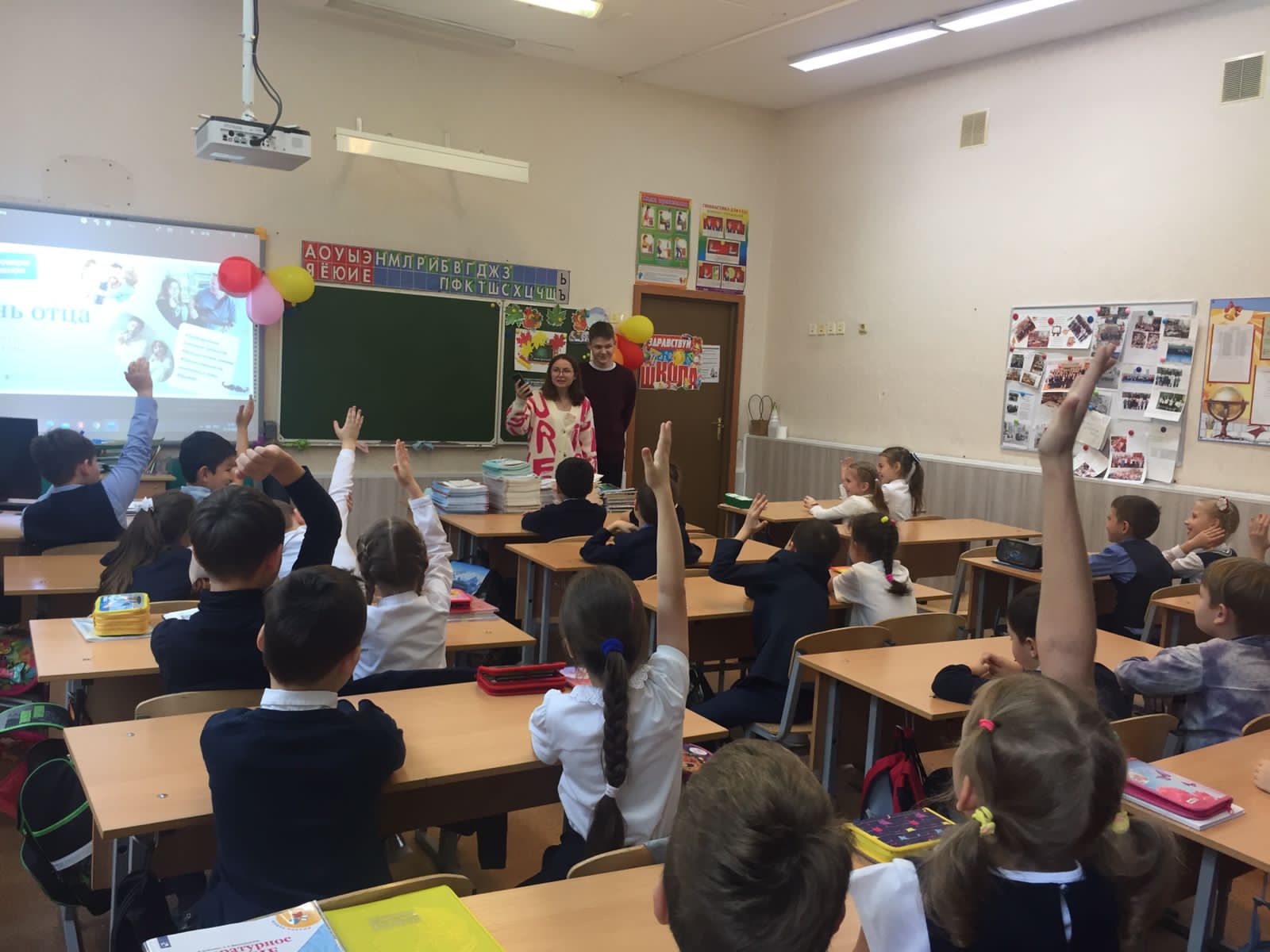 В предверии праздника "День отца" совет старшеклассников подготовил для начальной школы занимательный материал. Сегодня во 2 А классе ученики 9Б класса Ганеева Камила и Кириллов Кирилл провели мероприятие, посвящённое празднику.