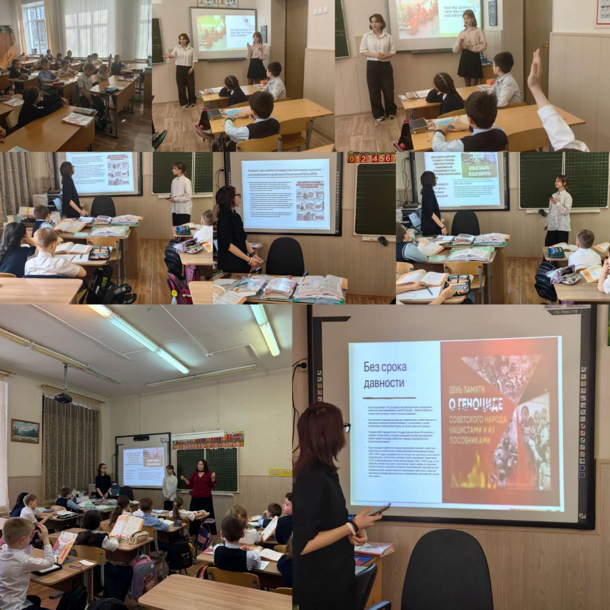 День памяти о геноциде советского народа нацистами и их пособниками в годы Великой Отечественной войны 1941 – 1945 годов проводится ежегодно с 19 апреля 2021 года. Выбор даты проведения мероприятия обусловлен тем, что в этот день, 19 апреля 1943 года, был издан Указ Президиума Верховного Совета СССР № 39 «О мерах наказания для немецко-фашистских злодеев, виновных в убийствах и истязаниях советского гражданского населения и пленных красноармейцев, для шпионов, изменников родины из числа советских граждан и для их пособников». 20 октября 2022 года Санкт-Петербургский городской суд признал блокаду Ленинграда геноцидом советского народа. 22 марта 2023 года Государственная Дума приняла заявление «О геноциде народов Советского Союза Германией и ее пособниками в ходе Великой Отечественной войны 1941 – 1945 годов» Цель мероприятий в этот день – сохранение исторической правды о преступлениях нацистов и их пособников в отношении мирных советских граждан в годы Великой Отечественной войны на оккупированной территории.