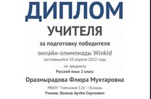 Благодарим за подготовку учителя начальных классов Оразмырадову Флюру Мухтаровну.