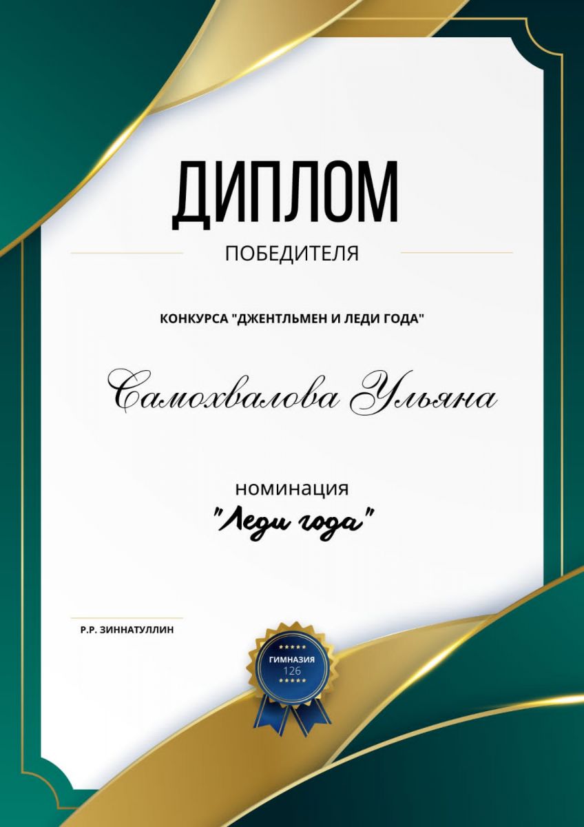 Леди года - Самохвалова Ульяна, ученица 9А класса.