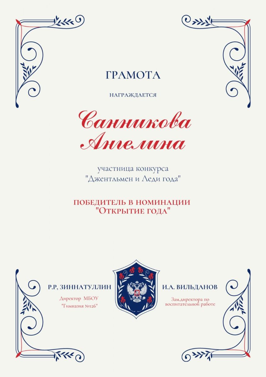 Поздравляем ученицу 8Б класса, Санникову Ангелину!