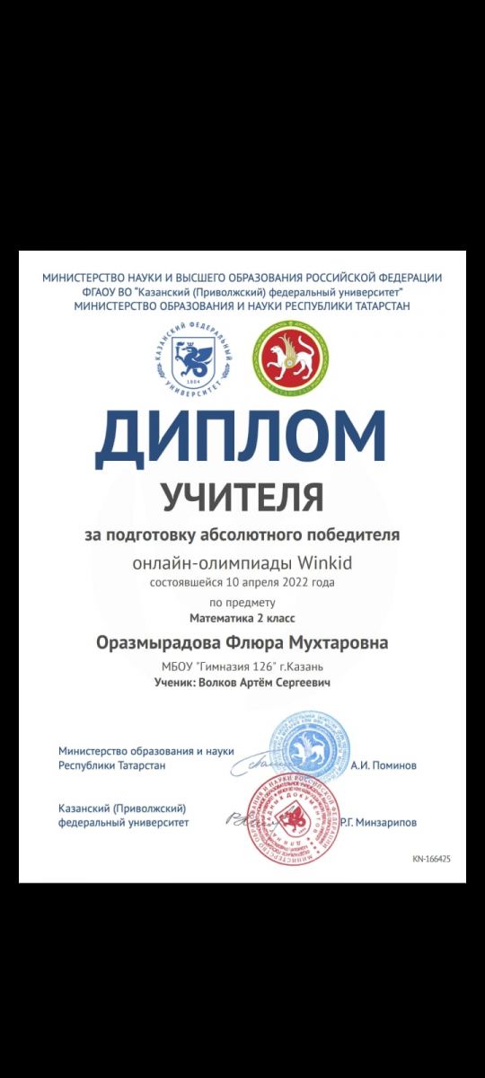 Поздравляем ученика 2 Б класса, Волкова Артёма с достойными успехами по олимпиадам по предметам:математика, русский язык, окружающий мир.