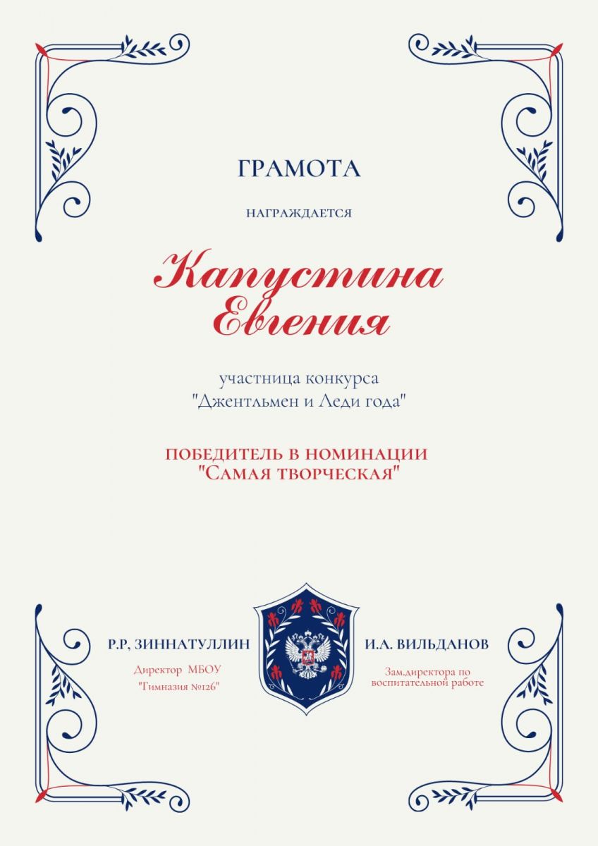 Поздравляем ученицу 11А класса, Капустину Евгению!