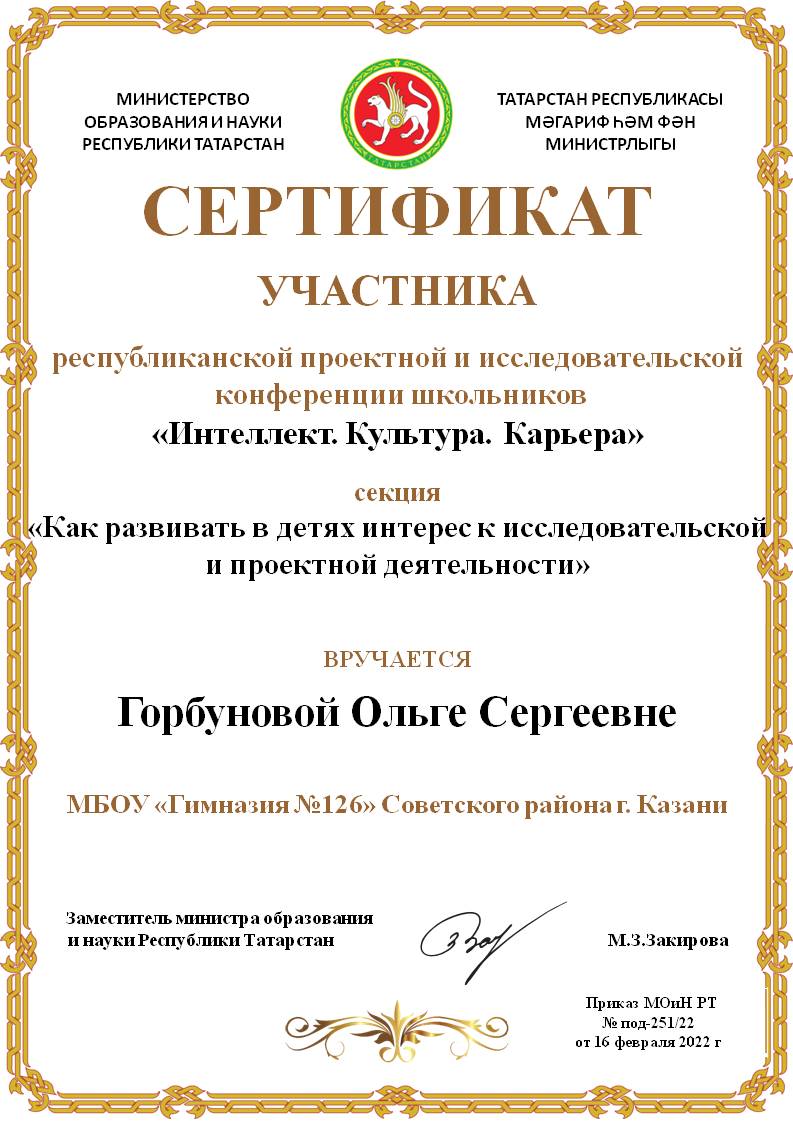 Поздравляем Горбунову Ольгу Сергеевну, учителя русского языка и литературы и благодарим за участие в Республиканской НПК "Интеллект. Культура. Карьера". Желаем творческих сил и дальнейших свершений.