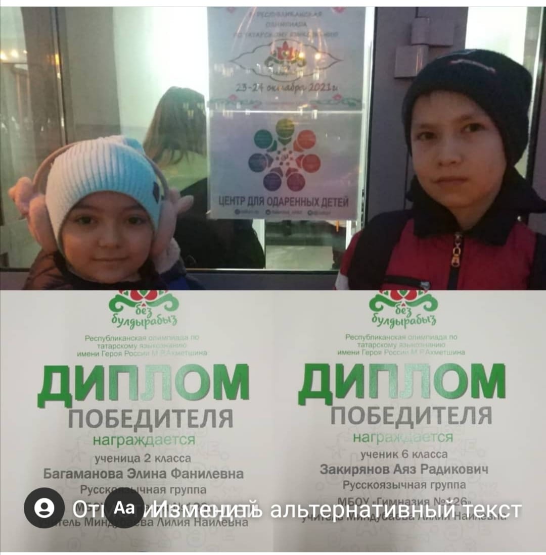 Бүген 2нче сыйныф укучысы Багаманова Э. һәм 6нчы сыйныф укучысы Закирянов А. татар теленнән "Без булдырабыз" дип исемләнгән республика олимпиадасында катнаштылар. Укучыларыбызның яхшы нәтиҗәләрен көтеп калабыз!