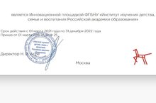 Наша Гимназия получила сертификат. Мы являемся Инновационной площадкой ФГБНУ"Институт изучения детства, семьи и воспитания Российской академии образования".