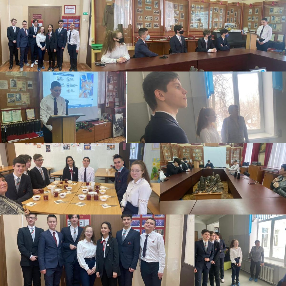«Волонтёры Победы», с музейной педагогикой гимназии, проектами, которые реализуются в гимназиии. Вопросы-ответы по принципу «а как у вас?» продолжались и в столовой, и во время экскурсии по гимназии.
