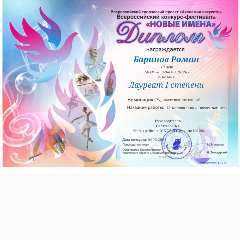 Поздравляем ученика 4 Б класса Баринова Романа с победой!