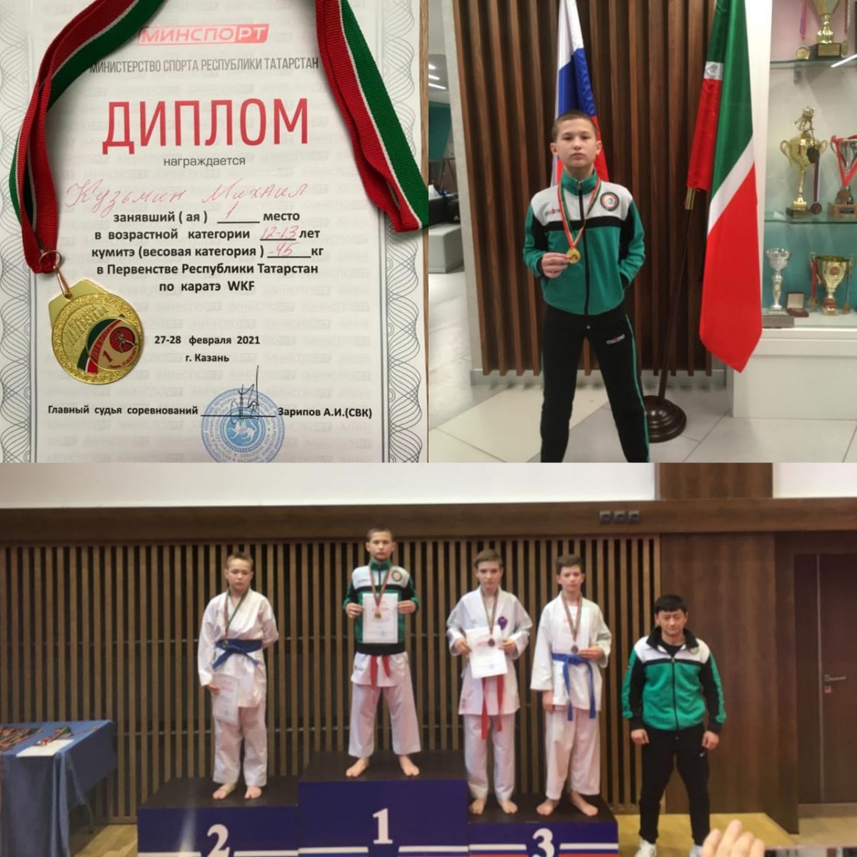 Поздравляем Кузьмина Михаила, ученика 7 А класса с абсолютной победой, 1 место по каратэ.