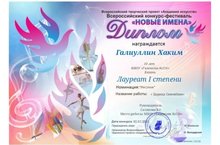 Поздравляем ученика 4 Б класса Галиуллина Хакима с победой (Лауреат I степени).