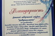 Творческая студия "Дивертисмент" получила благодарность за многолетнее сотрудничество с детской художественной школой №4. Фотогалерея