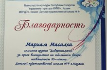 Ученица 3 А класса Масалха Мирьям получила благодарность за яркое выступление на юбилейном вечере ДШХ №4