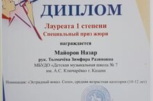 Поздравляем ученика 4 Б класса, Майорова Назара с победой! Диплом лауреата I степени, специальный приз жюри. Благодарим за подготовку педагога