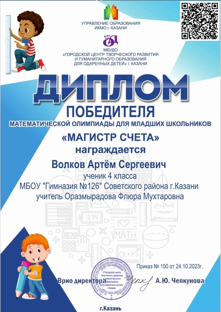 ПОБЕДИТЕЛЬ математической олимпиады 26.10.2023