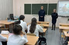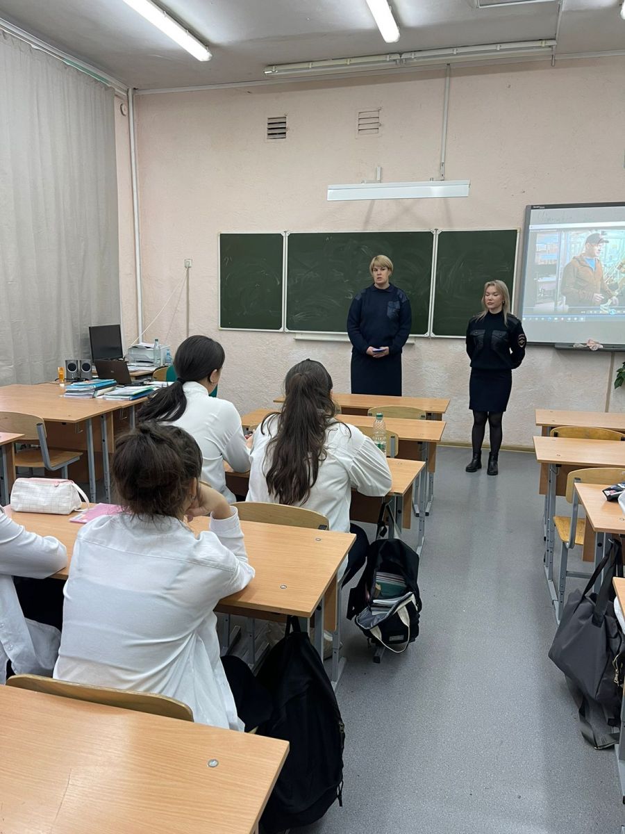 Муниципальный служащий ОП 12 Гвардейский Феропонтова Вера Анатольевна, инспектор ПДН ОП 12 Гвардейский Дудкина Гульназ Хайдаровна рассказали сегодня учащимся гимназии об ответственности за правонарушений.