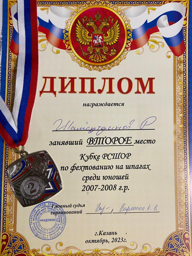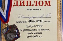 Поздравляем ученика 9 А класса Шамсутдинова Рафаэля. Он занял II место на Кубке РСШОР по фехтованию на шпагах среди юношей, 2007-2008 г.р. Желаем дальнейших спортивных побед.