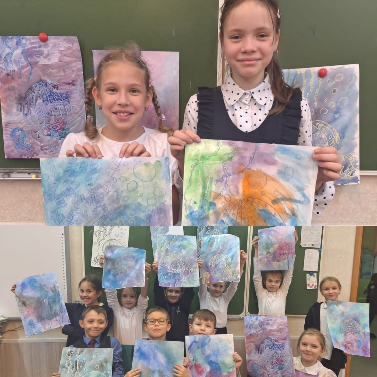 Ученики 3 А класса сегодня на занятиях Арт-студии отправились в путешествие на дно морское.