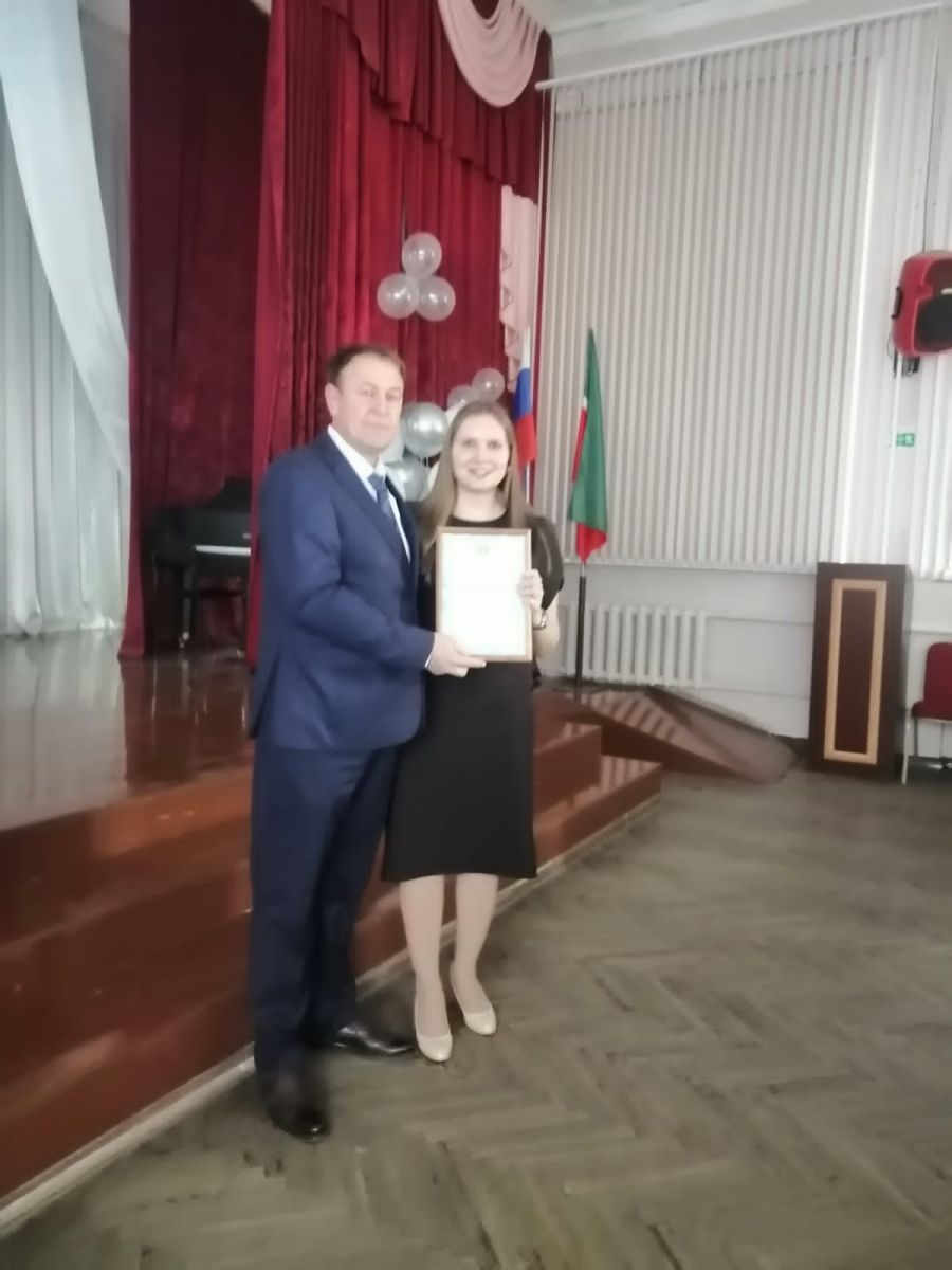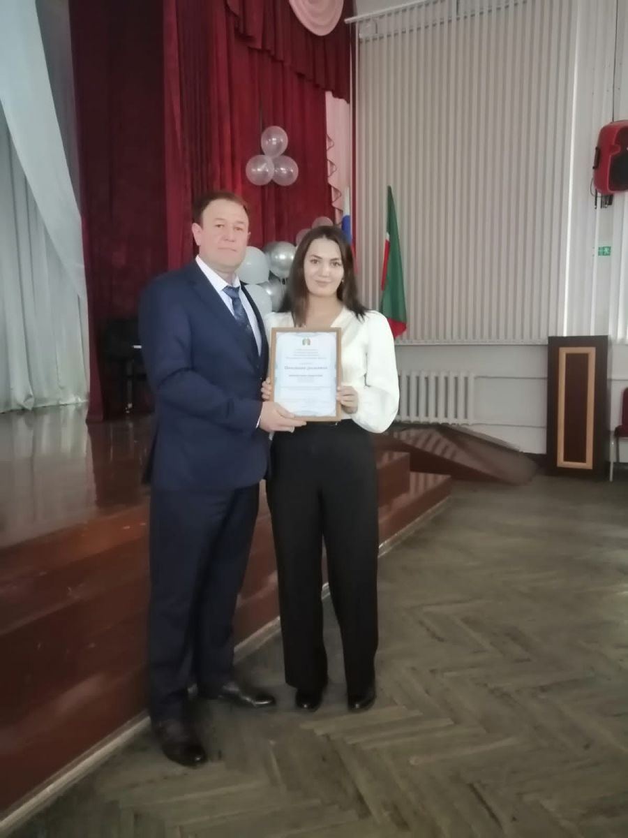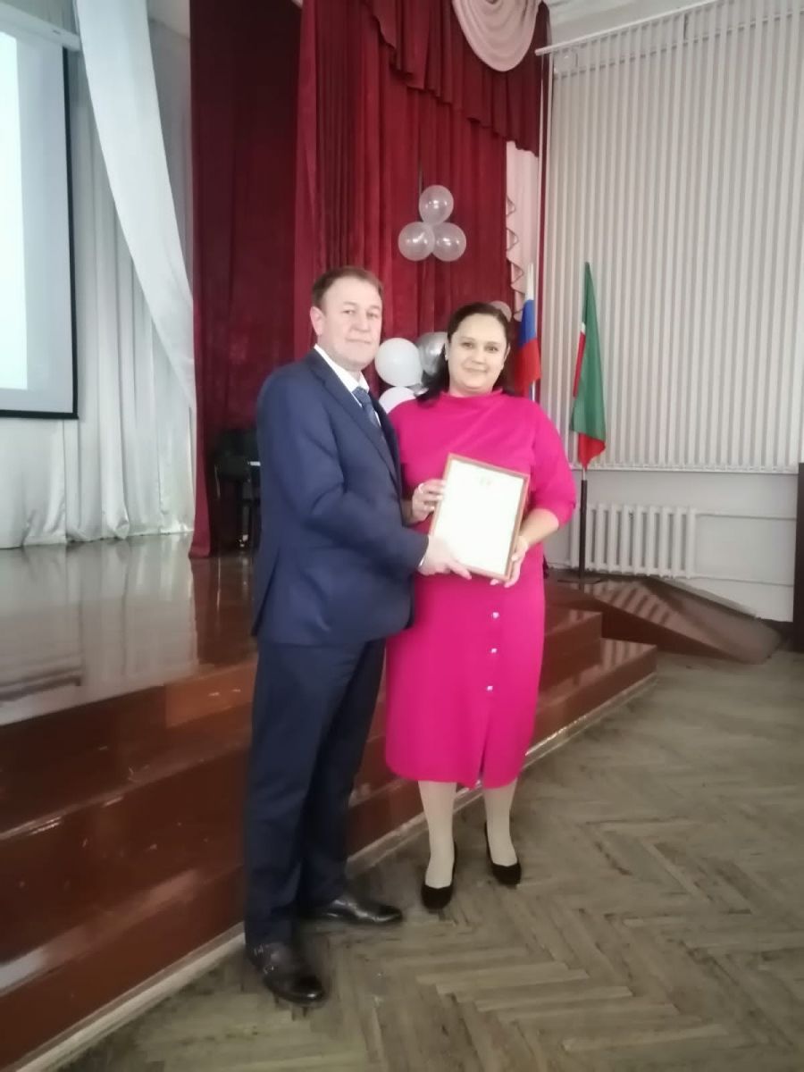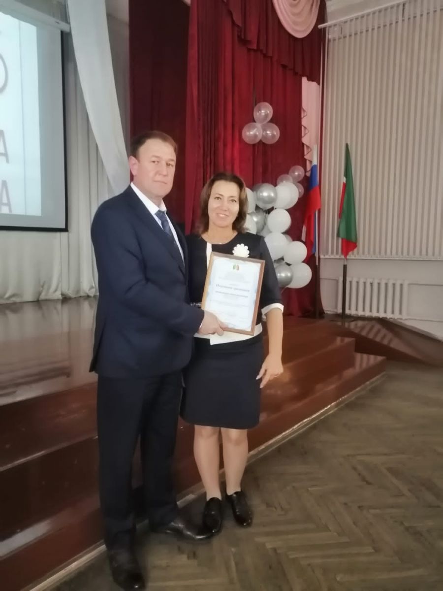 Поздравляем заместителя директора по воспитательной работе Гайнутдинову Резеду Рафаилевну! Награждена Почетной грамотой Отдела образования по Советскому району Управления образования Исполнительного комитета г. Казани за значительный вклад в развитие системы образования, достигнутые результаты работы. Желаем дальнейших успехов и неисчерпаемой энергии.