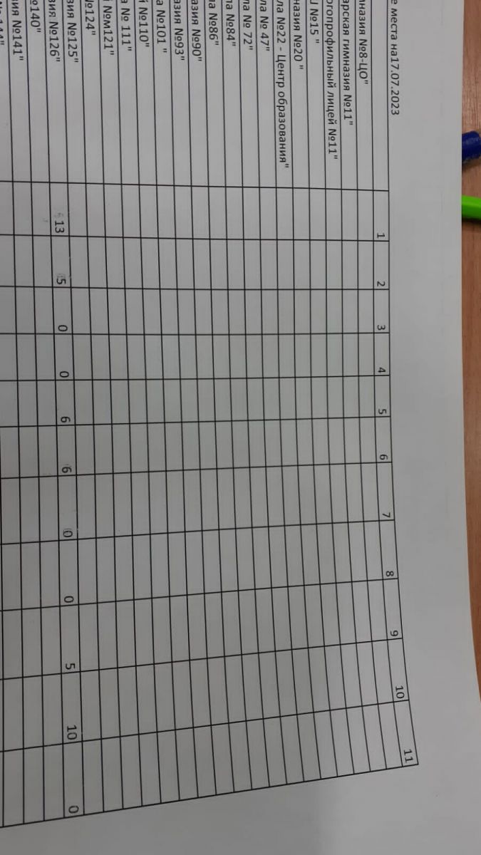 Информация по количеству свободных мест по классам (на 17 июля 2023 г.):