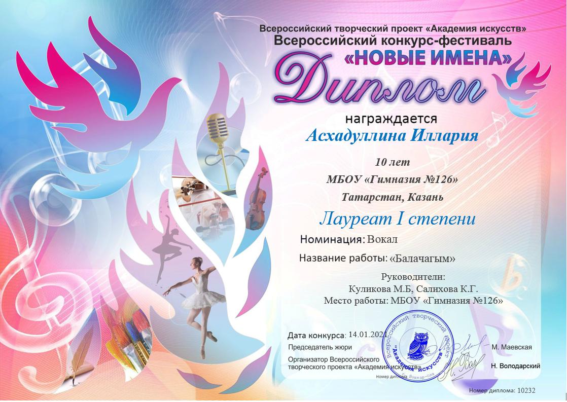 Всероссийский творческий проект "Академия искусства" Всероссийский конкурс-фестиваль "Новые имена"