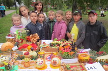 2 сентября в нашем микрорайоне состоялся праздник "Наш Дворик". Ребята 3А класса нашей школы представили различные поделки из фрутов и овощей.