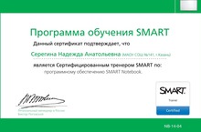 Поздравляем Надежду Анатольевну Серегину! Теперь Надежда Анатольевна не только Образцовый учитель SMART, но и Сертифицированный тренер SMART по программному обеспечению SMART Notebook.