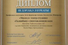 Татарская театральная студия "Мизгел" (руководитель Гиззатуллина А.Р.) стала лауреатом 3 степени на республиканском национальном молодёжном фестивале театральных коллективов "Ягымлы Яз". Поздравляем с заслуженной наградой.