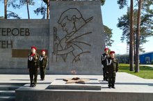 Юнармейцы гимназии на Вахте памяти около Вечного огня в посёлке Дербышки.