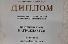 Кузнецова Алена, ученица 8А класса, стала призером Республиканской олимпиады школьников по русскому языку! Поздравляем её и учителя русского языка и литературы Мухамадееву Аллу Ринатовну с замечательным результатом!