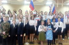 21 нче февраль көнне мәктәбебездә “Туган ил турында!” “Батырлык турында!” “Дан турында!" исеме астында хәрби-патриотик җырны сәхнәләштерү конкурсы булып узды.