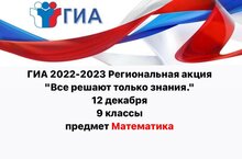 23 декабря 2022 года выпускники нашей школы примут участие в региональной акции "Все решают только знания" в целях ознакомления с контрольно-измерительными материалами, используемыми при проведении государственнной итоговой аттестации, повышения уровня психологической готовности к экзаменам, получения объективной информации о качестве подготовки обучающихся в интересах всех участников образовательных отношений.