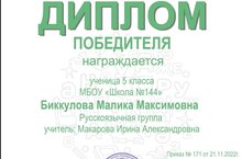 Муниципальное бюджетное общеобразовательное учреждение «Средняя общеобразовательная школа №144 с углубленным изучением отдельных предметов» Советского района г. Казани