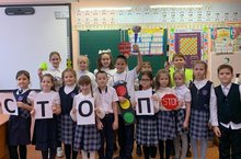 Директор школы Саидгараева Фирдаус Ахтямовна и завуч начальных классов Соколова Эмма Михайловна поздравили юных инспекторов дорожного движения с победой в районном конкурсе.