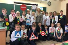 4 А сыйныфы укучылары гомуми белем бирү оешмалары укытучылары һәм укучыларының Бөтенроссия конкурсында, "Юл кагыйдәләре-ышанычлы дуслар "темасы буенча җиңүче булдылар. -