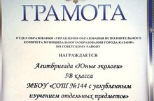 Муниципальное бюджетное общеобразовательное учреждение «Средняя общеобразовательная школа №144 с углубленным изучением отдельных предметов» Советского района г. Казани