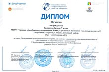 7А сыйныф укучысы Валиулов Тимур Н.И.Лобачевский исмендэгэ IV Бетенроссия фэнни конференциясендэ икенче урынга лаек булды. Котлыйбыз!