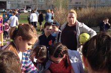 На празднике двора. 7 мая на празднике двора, в честь Дня Победы ученики и учителя нашей школы организовали для жителей микрорайона занимательные мастер-классы, игры в шахматы и др. С Днём Победы!