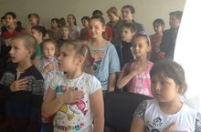 Воспитанники лагеря исполнили гимн РФ. -