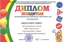 Абдуллин Самат, ученик 2 класса «В» стал ПОБЕДИТЕЛЕМ РЕСПУБЛИКАНСКОЙ ОЛИМПИАДЫ «МИР ВОКРУГ НАС».
