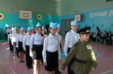 19 февраля прошел смотр строевой песни. На снимке 6Б класс - победитель смотра среди 6-7 классов