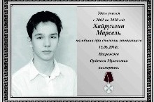 3 апреля в школе 144 прошёл митинг памяти геройски погибшего ученика школы Хайруллина Марселя. Трагедия произошла на пляжном комплексе "Локомотив" 15 июня 2010 года. Заметив тонущего ребёнка Марсель самоотверженно бросился в воду.Удержал тонущего мальчика на плаву, передал одноклассникам, но к сожалению сам захлебнулся и ушёл под воду... В настоящее время по ходатайству администрации школы 144 Советского района отделом образования Управления Исполнительного комитета г. Казани по Советскому району оформляются документы на награждение Хайруллина Марселя Рамилевича (посмертно) орденом Мужества.