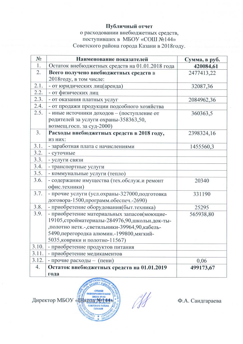 Отчет о привлечении и расходовании внебюджетных средств в 2018 году
