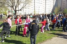 Ребята приняли участие в спортивных состязаниях и «Веселых стартах». Любители рисовать поучаствовали в конкурсе рисунков на асфальте.