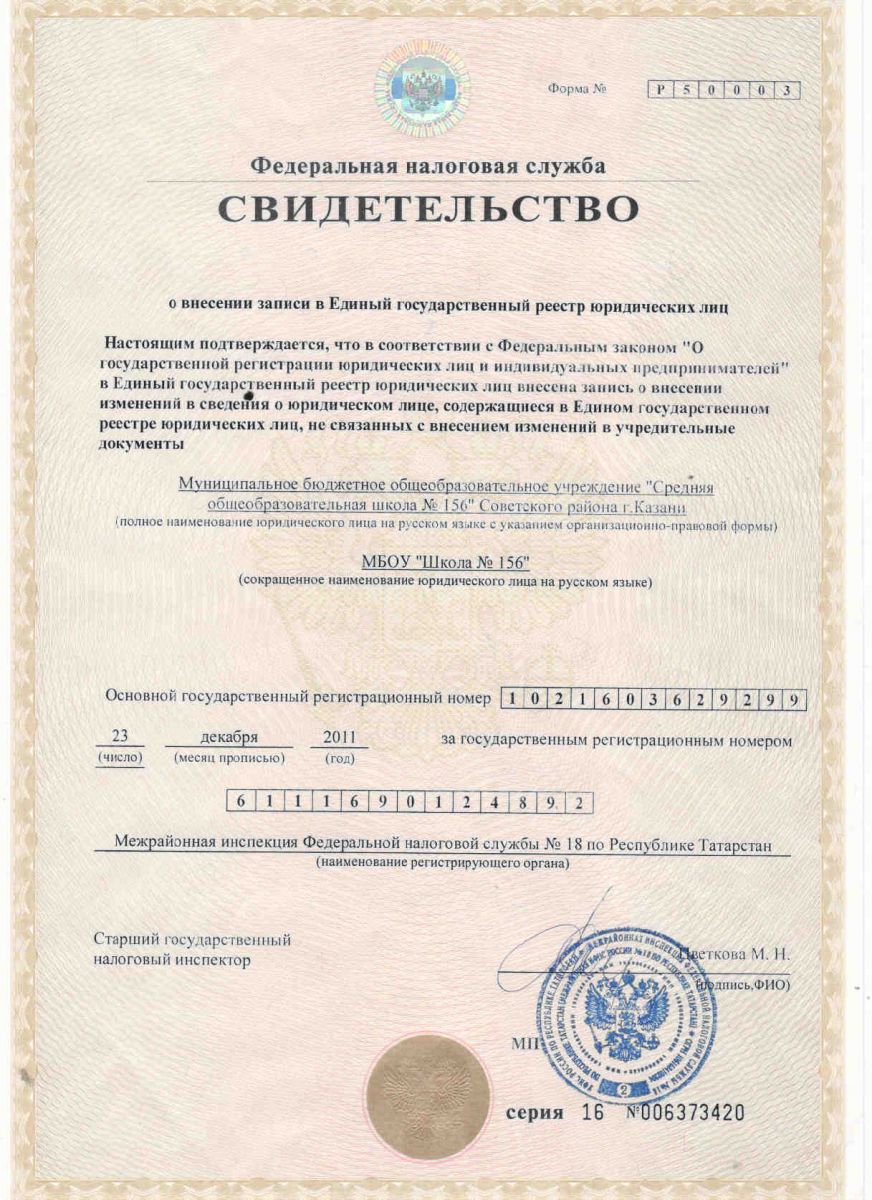 Свидетельство о внесении в Единый государственный реестр юридических лиц 2011