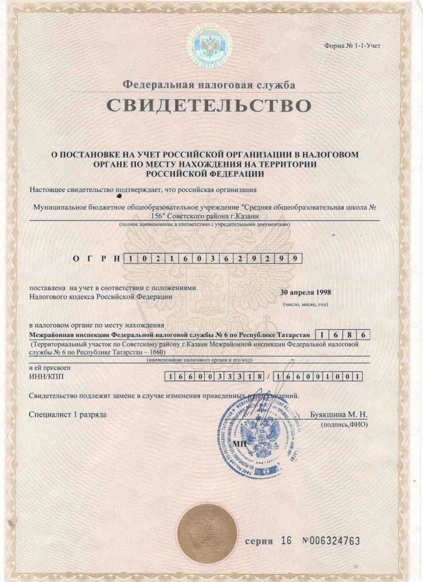 Муниципальное бюджетное общеобразовательное учреждение «Средняя общеобразовательная школа №156» Советского района г. Казани