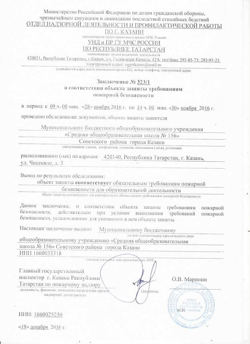 Заключение о соответствиии объекта защиты требованиям пожарной безопасности декабрь 2016