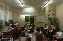 В рамках месячника безопасности, сегодня, 9 сентября, в нашем лицее прошла профилактическая беседа с участием старшего лейтенанта инспектора ДПС Насыбуллина Р.Ф. среди учащихся 3-х классов.