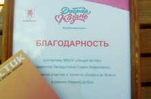 Наш лицей принимал активное участие в благотворительных акциях "Недели добра". В акции по сбору макулатуры "Бумага во благо" учащиеся лицея собрали 935 кг. Все средства были перечислены в благотворительные фонды.